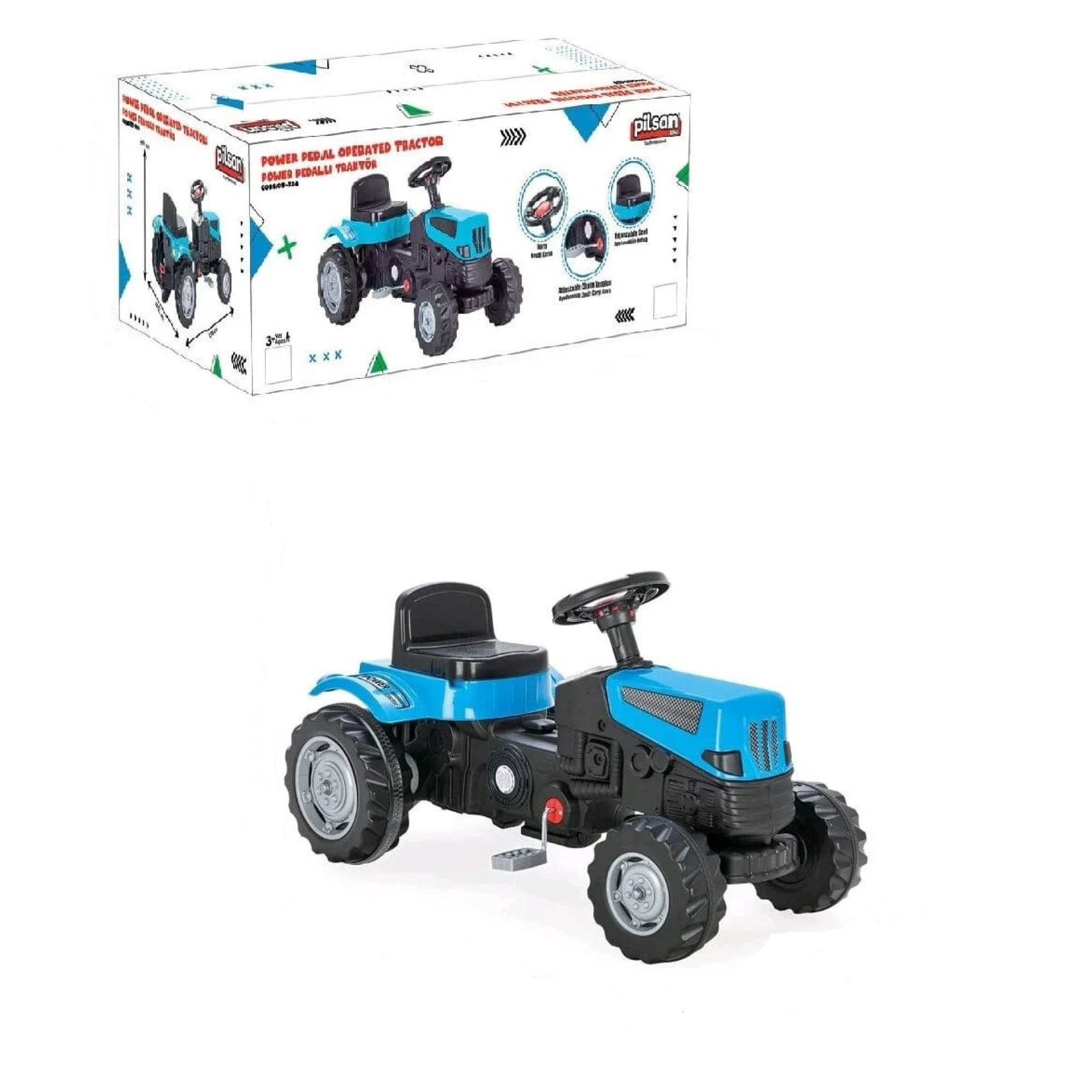 Дитячий педальний трактор Pilsan 07-324 синій — це яскрава іграшка, призначена для активних ігор на свіжому повітрі.