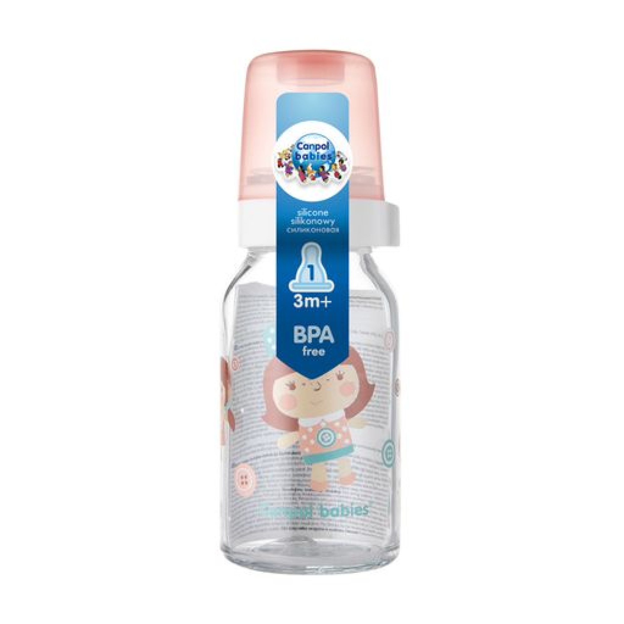 Основні характеристики Пляшечка для годування скляна Canpol Babies рожева, 120 мл (42/202)