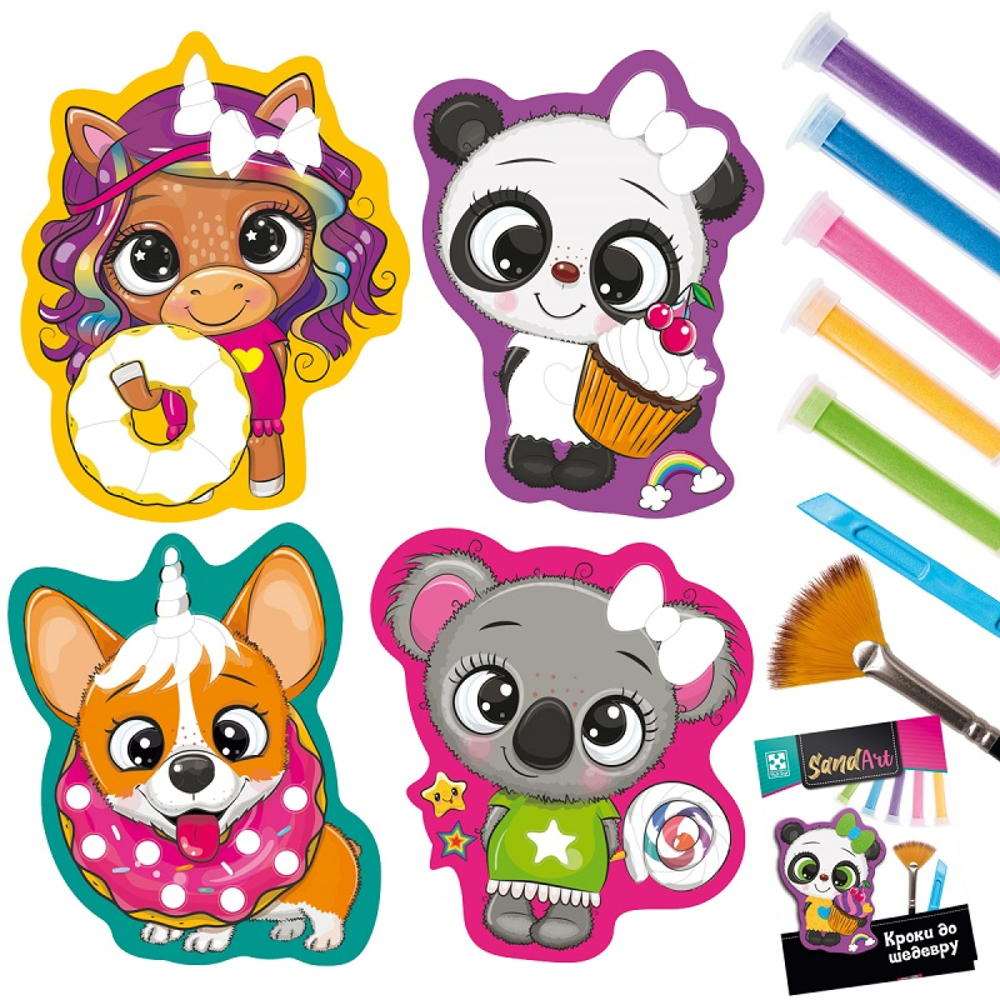 З набором «Солодка вечірка» від Vladi Toys ваша дитина зможе створити власні яскраві картинки, прикрашаючи їх кольоровим піском. Це веселе заняття надихає на творчість та допомагає розвивати корисні навички.