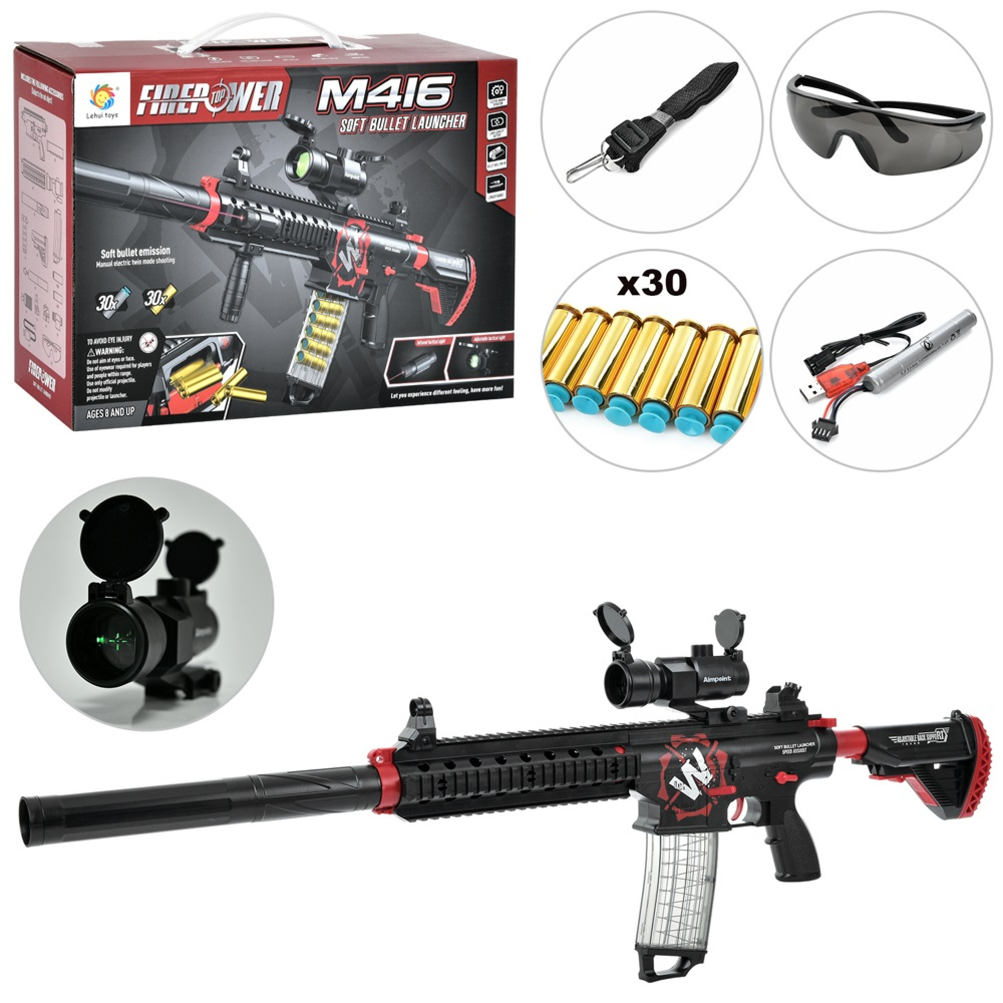 Основні характеристики Автомат іграшковий, м'які кулі-присоски 30шт (M666)