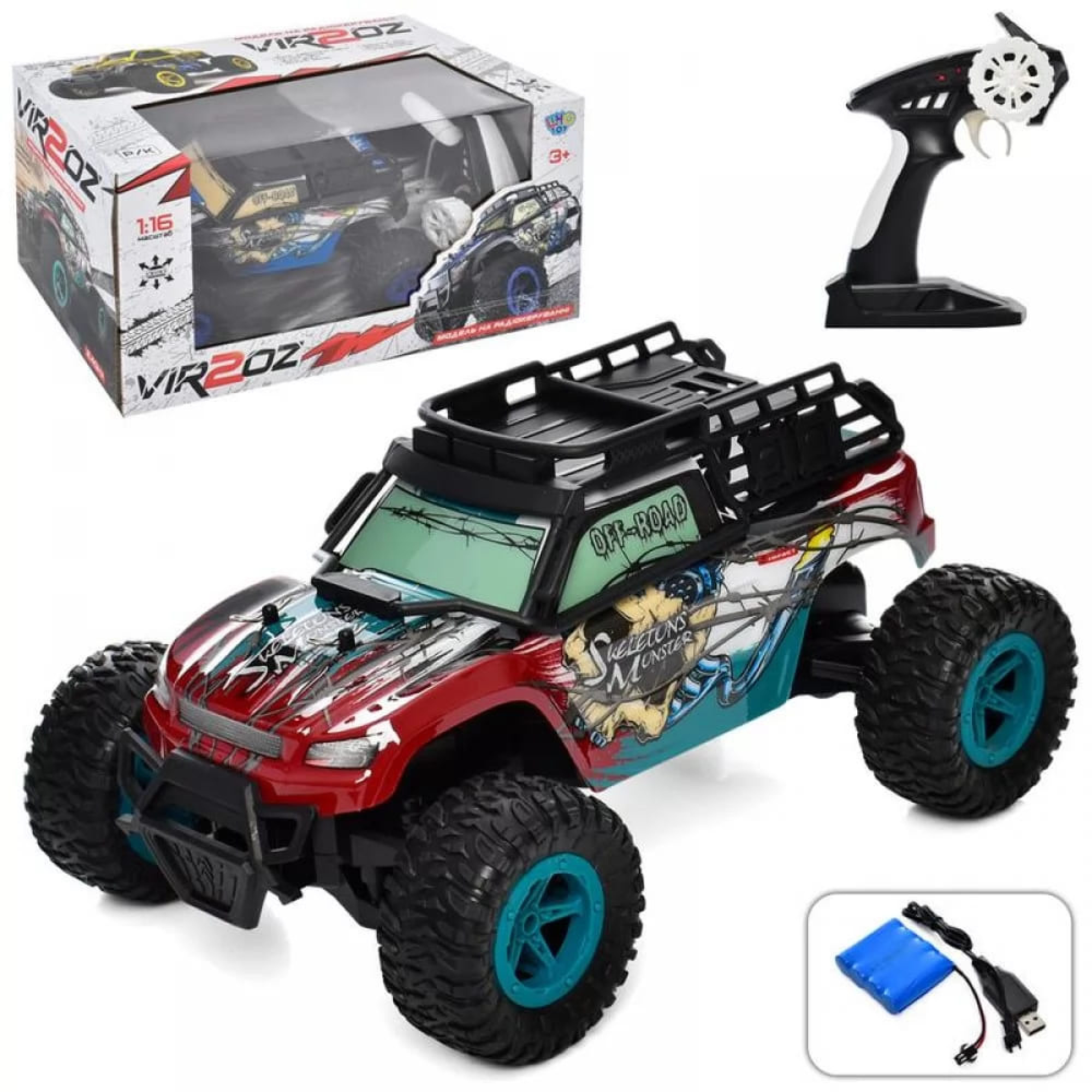 Міцна конструкція та сучасний вигляд Корпус виготовлений із зносостійкого пластику, здатного витримати удари та активну експлуатацію. Яскравий і агресивний дизайн джипа робить його схожим на справжній позашляховик. Така іграшка точно стане однією з найулюбленіших у колекції маленького гонщика.Джип може їздити купинами, дрібними ярами, брудом і калюжами і напевно пройде там, де інші застрягли б.