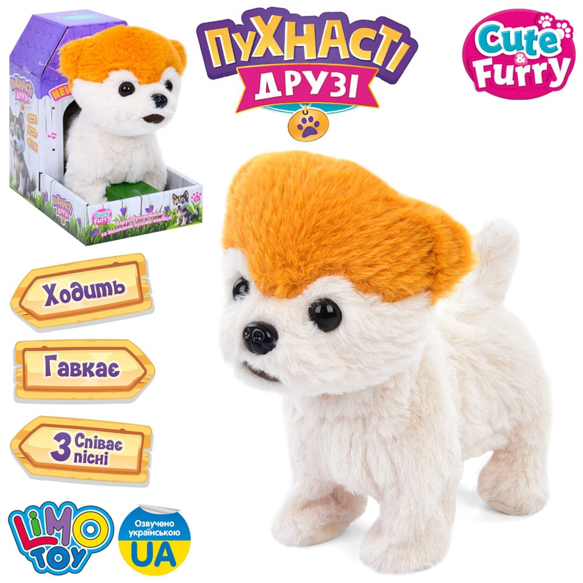 Ця мила інтерактивна собачка подарує малюкові незабутні емоції, ніби вдома з’явився справжній домашній улюбленець. Вона не лише ходить, а й виконує українську пісеньку, реагує звуками та рухами, створюючи атмосферу радості й гри.