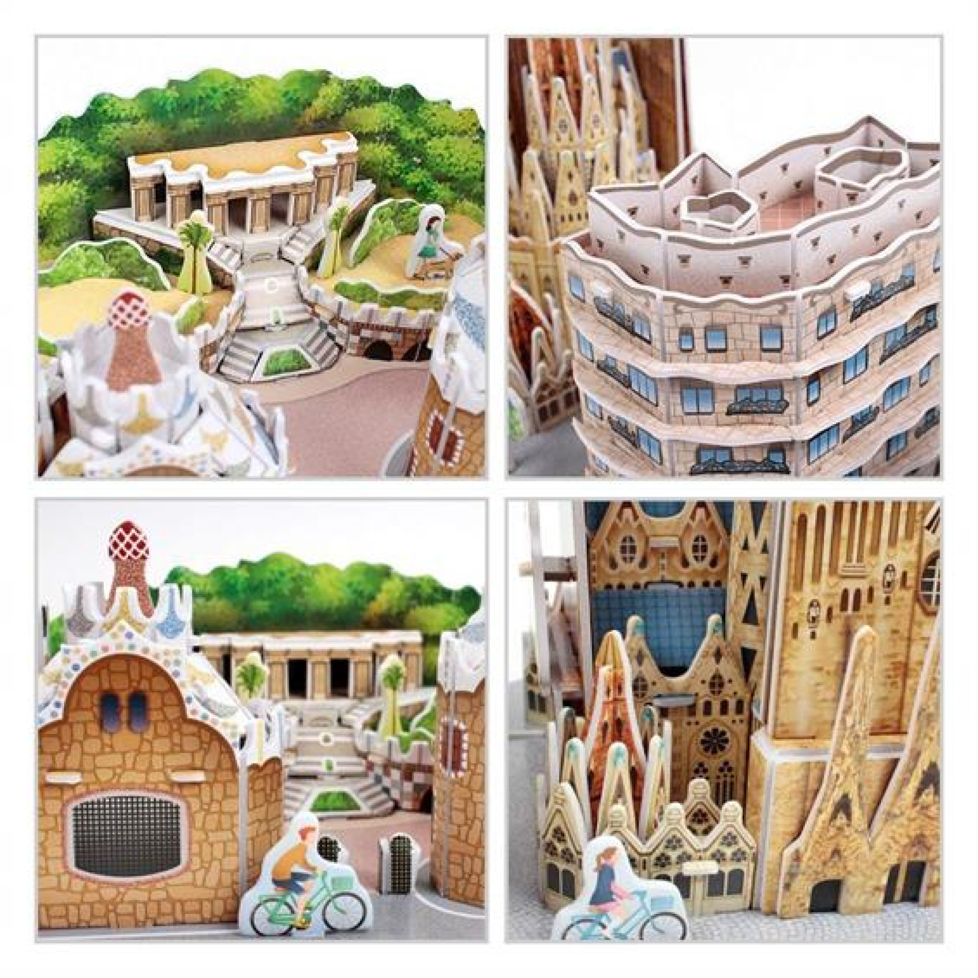 У наборі представлені знакові архітектурні шедеври, такі як Саграда Фамілія, Парк Гуель, Каса Міла та Каса Батльо, що дозволяє глибше зануритися в атмосферу каталонської столиці.