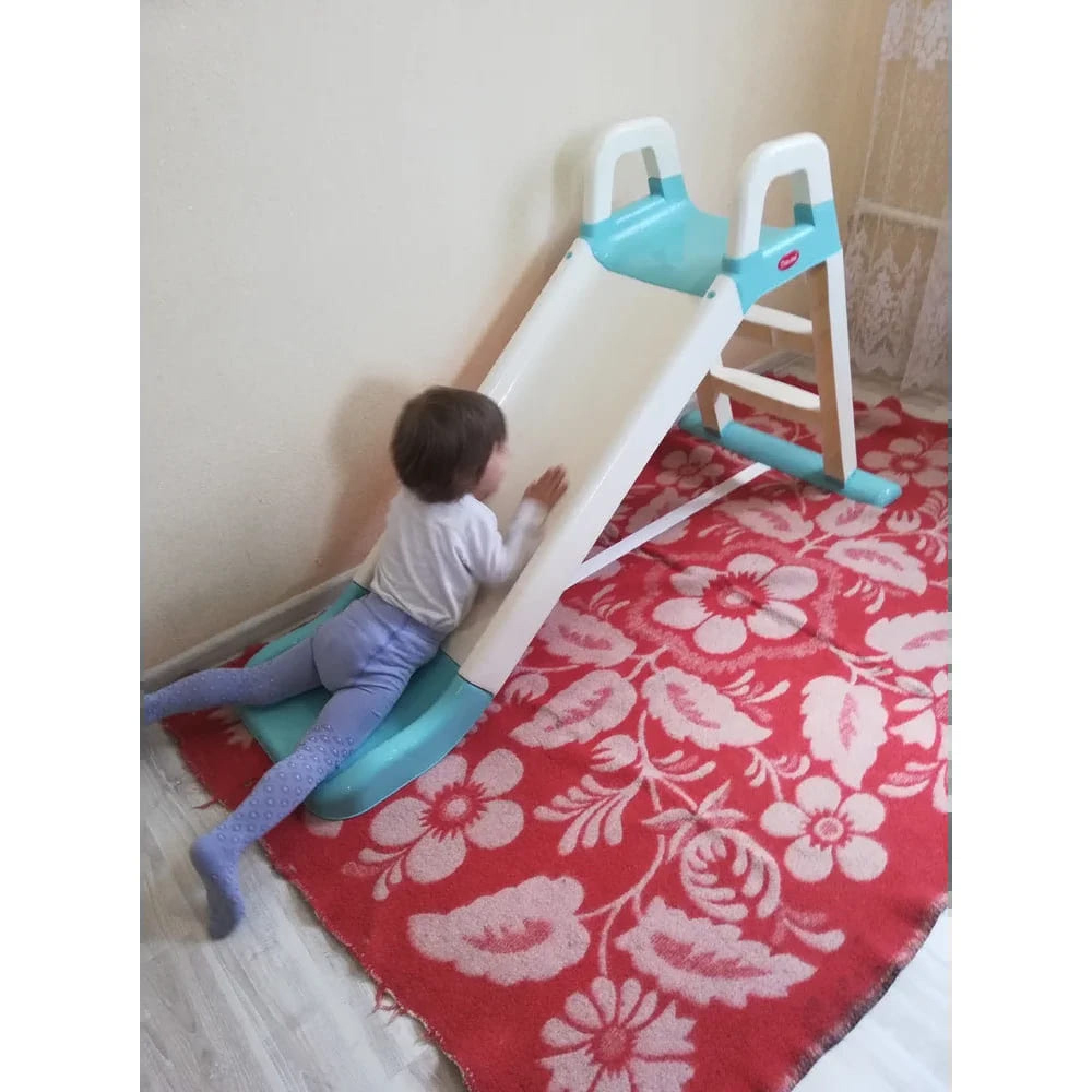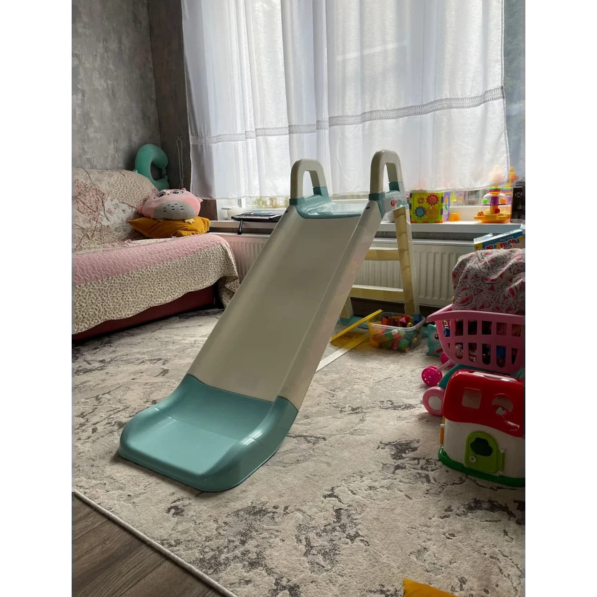 Дитяча гірка для катання має гладку поверхню з невеликим нахилом, що дозволяє дітям легко забиратися на неї та спускатися вниз. Довжина спуску 140 см забезпечує дітям відчуття швидкості, але при цьому не є надто високою, щоб дитина почувалася некомфортно. Для зручності та безпеки передбачені бортики, за які дитина може триматися.